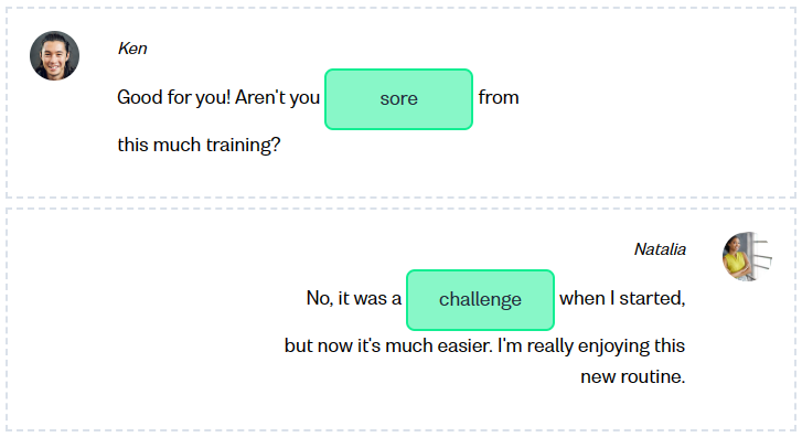 스포츠 및 피트니스에 관한 표현을 발전시켜 보세요
